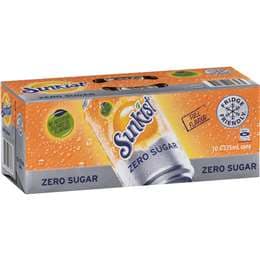 Sunkist Zero Sugar Orange Soft Drink Cans Multipack 375mL x 10 pack