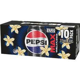 Pepsi Max No Sugar Cola Vanilla Soft Drink Cans Multipack 375mL x 10 pack