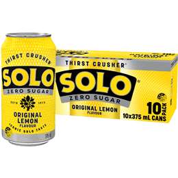 Solo Zero Sugar Original Lemon Soft Drink Cans Multipack 375mL x 10 pack